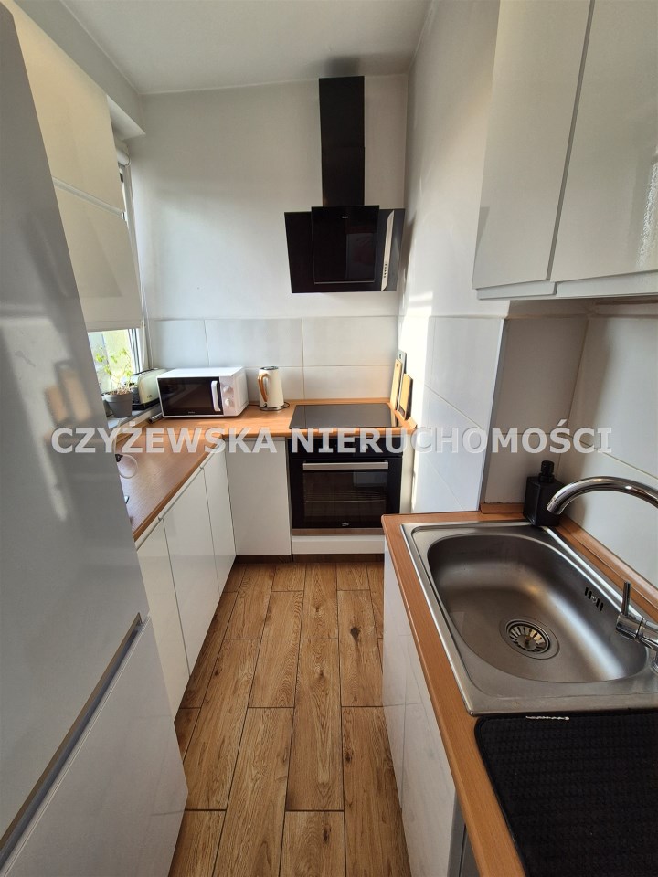 Lokal w pełni umeblowany. Kuchnia z zabudową meblową i sprzętem AGD (lodówka, płyta indukcyjna, piekarnik w zabudowie, okap), duży pokój wyposażony w meble, przedpokój i łazienka również (szafka, pralka). Jedynie mały pokój bez umeblowania, pozostaje do własnej aranżacji.
